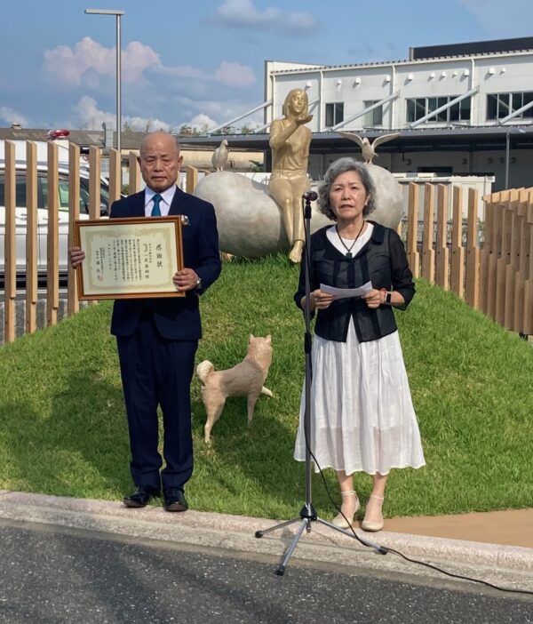 また、大庭様とともに建てたこのモニュメントには、命の大切さ、生きていることのすばらしさへの気持ちを込めています。今日は、その気持ちを新たにしました。本当にありがとうございます。